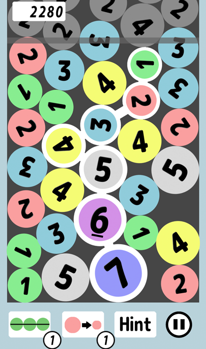 Connect circles with the same number to make them disappear all at once.